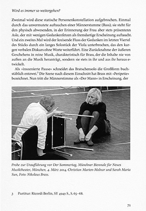 Auszüge aus Kritiken zu SommertagSummen, wo die Worte fehlen, Die Oper Sommertag von Nikolaus Brass I Berliner Zeitung, 26. Januar 2015 I von Clemens HausteinVielleicht ist dies das stärkste unter vielen Argumenten für Nikolaus Brass' Kammeroper Sommertag: Die Spannung im Publikum lässt während der gesamten Aufführung nie nach. Alte und neue rote Fäden , Das Ultraschall-Festival stellt einmal mehr die Sprengkraft des Altenb gegen neue bunte Klangspektren I Neue Musikzeitung, Februar 2015 I von Isabel HerzfeldWie aus äußerster Reduktion Substanz entstehen kann war exemplarisch in der Kammeroper Sommertag von Nikolaus Brass zu erleben. (...) Was in der Regie von Christian Marten-Molnar als Synchonizität von Vergangenheit und Gegenwart dargestellt wird, welche Vielschichtigkeit seelischer Vorgänge und Beziehungen zwischen drei Männern und drei Frauen entsteht, wie sechs Musiker dies in kargen Linien, schroffen Akzenten und verstörenden Verdichtungen unterstreichen, kompakt und doch unmittelbar eingängig, das ist einfach großes Musiktheater.